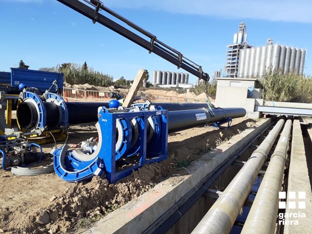 Es comença la instal·lació dels primers trams de canonada de 400 mm de PEAD PN10 d’un total de 650 ml del nou ramal de la xarxa d’aigua industrial d’AITASA.