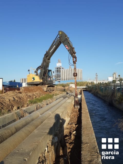 Prèvia s’ha dut a terme l’excavació de la rasa amb una cullera bivalva, en una operació delicada però finalment exitosa. El compromís de termini segueix intacte.
