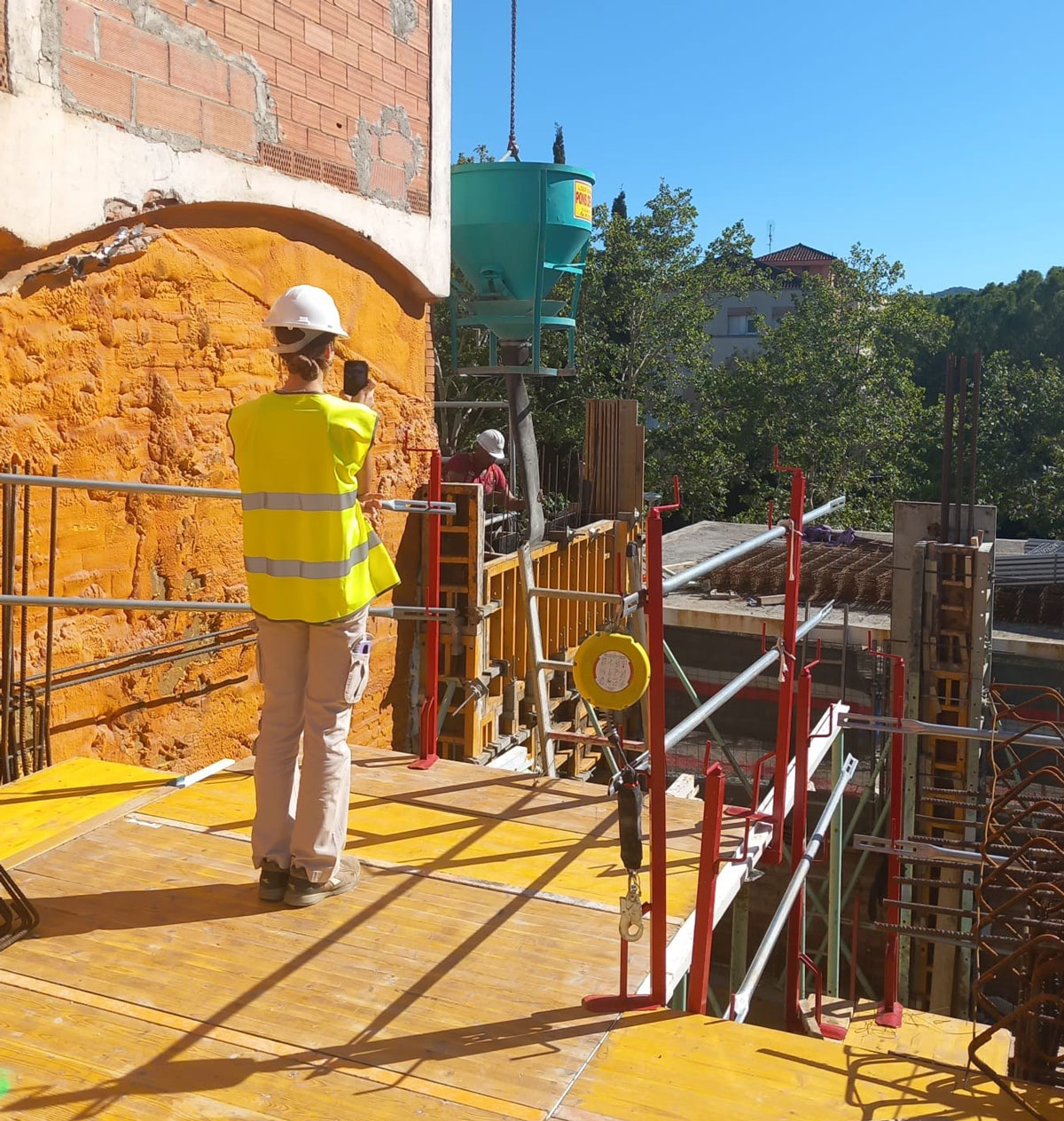 L’equip de l’obra de CULMIA Urban Monestir Sant Cugat, que està duent a terme GARCIA RIERA, hem pogut col·laborar amb quatre estudiants de l’Escola Tècnica Superior d’Arquitectura del Vallès, ETSAV –de la Universitat Politècnica de Catalunya, UPC BarcelonaTech– de l’assignatura de TECNOLOGIA-2, amb la finalitat que puguin fer un treball informatiu sobre la posada en obra de formigó. La visita s’ha efectuat amb el vistiplau dels facultatius que tenim a aquesta obra: Anabel Busco Bayón, Gerent de Promocions de CULMIA; Jaume Fitó Poch, Arquitecte Director d’Obra de FITARQ; Francesc Belart i Calvet, Arquitecte Tècnic Director d’Execució d’obra; i Nestor Gutiérrez López, coordinador de seguretat i salut.